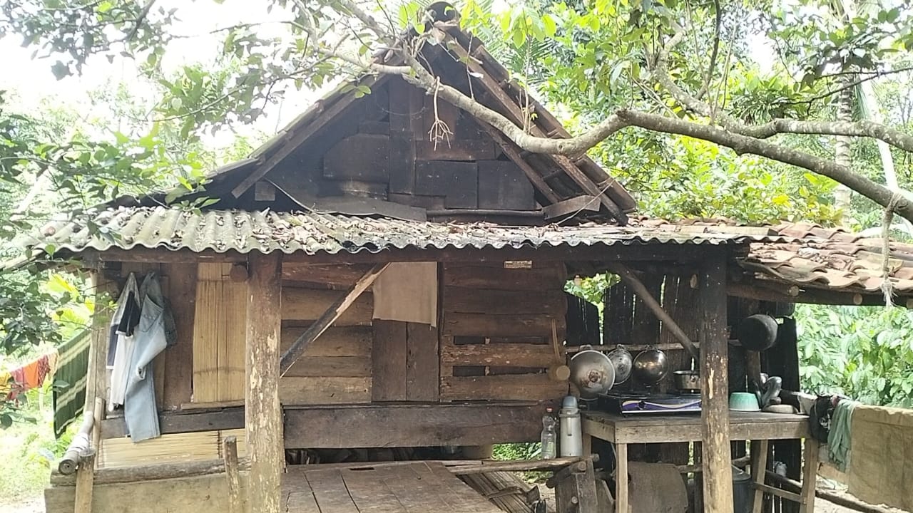 Mereka harus bertahan di gubuk reyot berdinding pelupuh bambu, karena tidak memiliki cukup uang untuk membangun rumahnya.