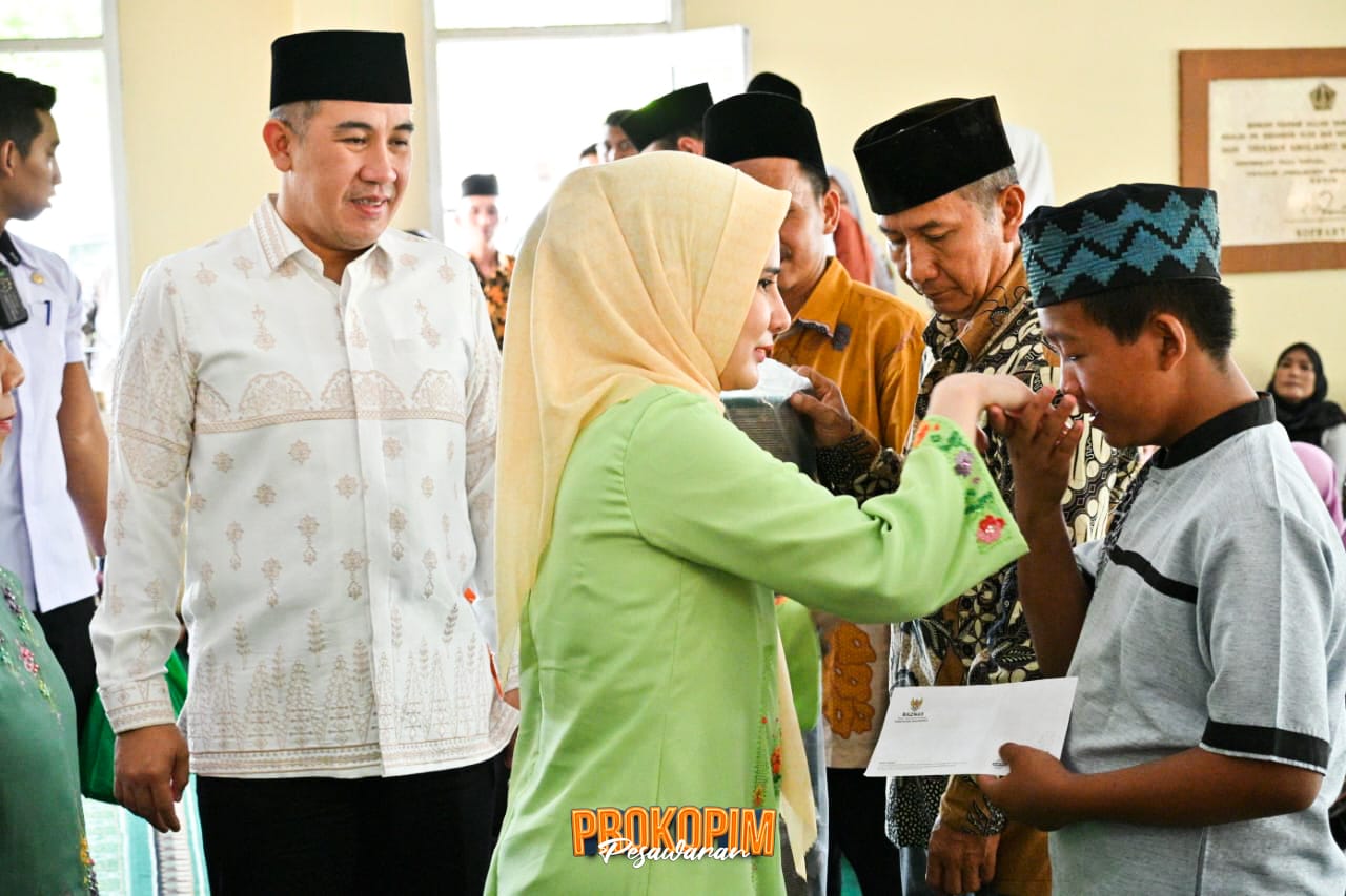 Dalam kesempatan ini, Bupati Dendi bersama jajaran juga menyalurkan berbagai bantuan, termasuk program hibah untuk rumah ibadah sebesar Rp10 juta, ambal masjid, santunan anak yatim, serta ratusan paket bantuan sembako dari Baznas Pesawaran.