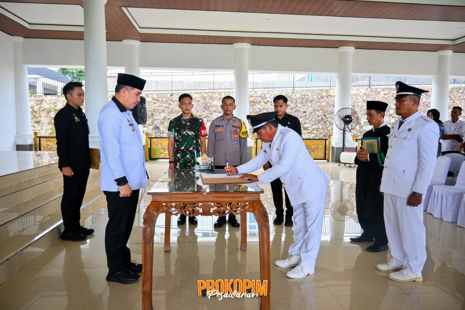 Turut hadir Asisten Pemerintahan & Kesra Sunyoto, Inspektur Singgih Febriantoro, Kadis PMD Nur Asikin, Kadis Kominfotiksan Jayadi Yasa, Kabag Hukum Rizki Setiawan, Kabag Tapem Syarif Husin, Camat Negeri Katon Data Trianda, serta unsur perangkat desa lainnya. (Devis/Yd)