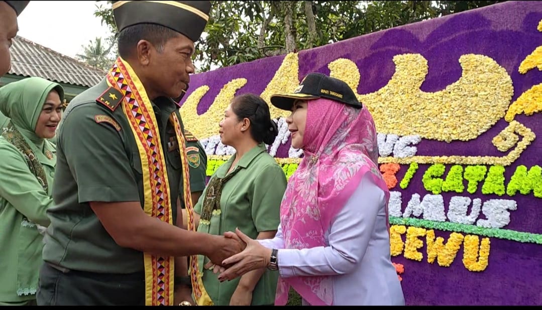 TANGGAMUS – Bupati Tanggamus Hj. Dewi Handajani, Menyambut Kunjungan Kerja Komandan Korem 043/ Garuda Hitam Brigjen TNI Iwan Ma’ruf Zainuddin, SE beserta Ketua Persit KCK Koorcab Rem 043 PD II/ SWJ. Ny. Ratna Iwan Ma’ruf Zainuddin di Kodim 0424 /Tanggamus. Kamis (13/7/2023)