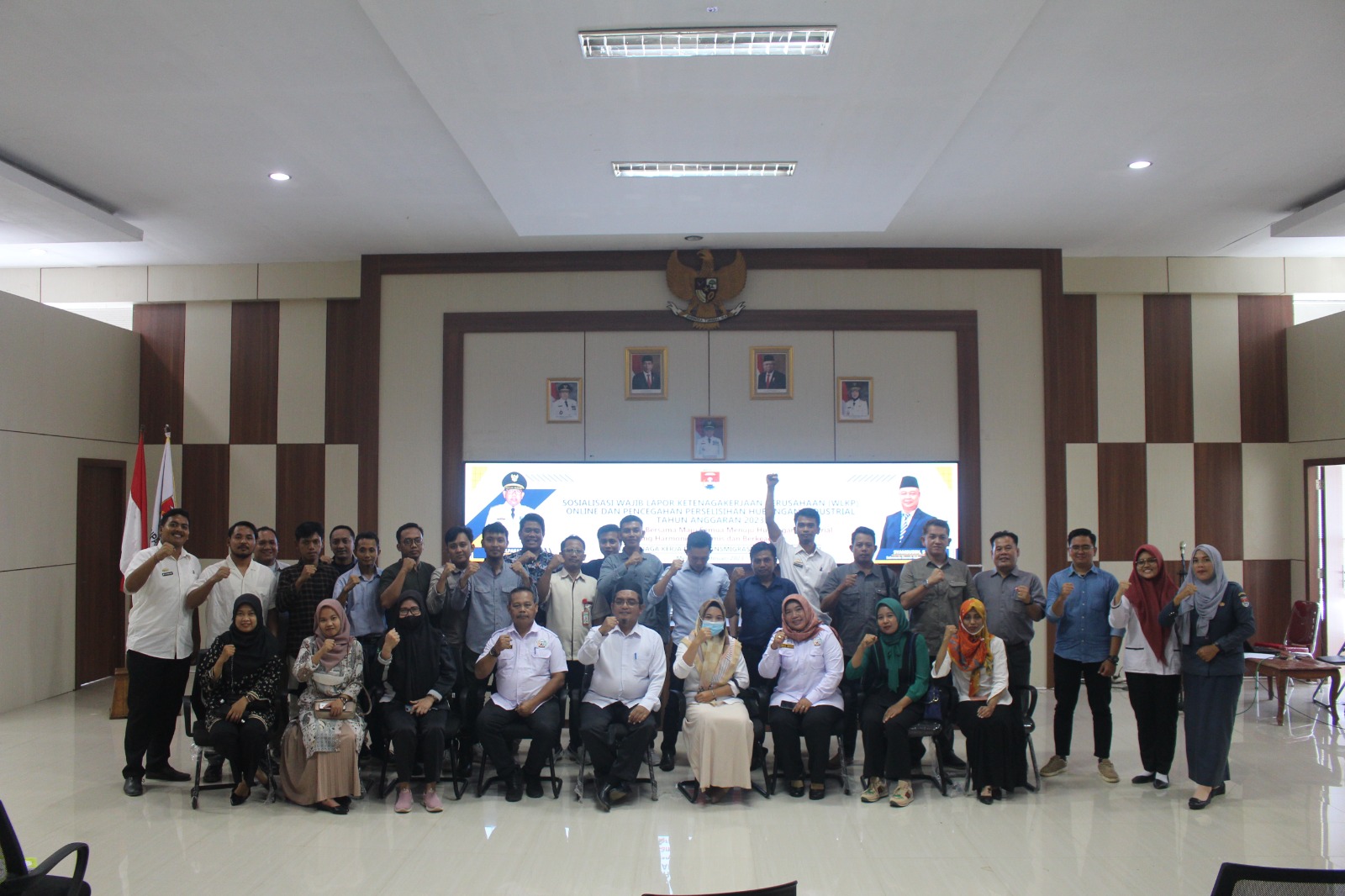 SIRLAMPUNG, MESUJI– Untuk Meningkatkan Kesejahteraan pekerja/buruh Pemerintah Kabupaten Mesuji melalui Dinas Tenaga Kerja dan Transmigrasi Kabupaten Mesuji melaksanakan sosialisasi Wajib Lapor Ketenagakerjaan Di Perusahaan (WLKP) Online dan Pencegahan Perselisihan Hubungan Industrial bagi pimpinan perusahaan Se- Kabupaten Mesuji, bertempat di Aula Tabek Oy Kantor Bupati Mesuji pada, Rabu 1 Februari 2023.