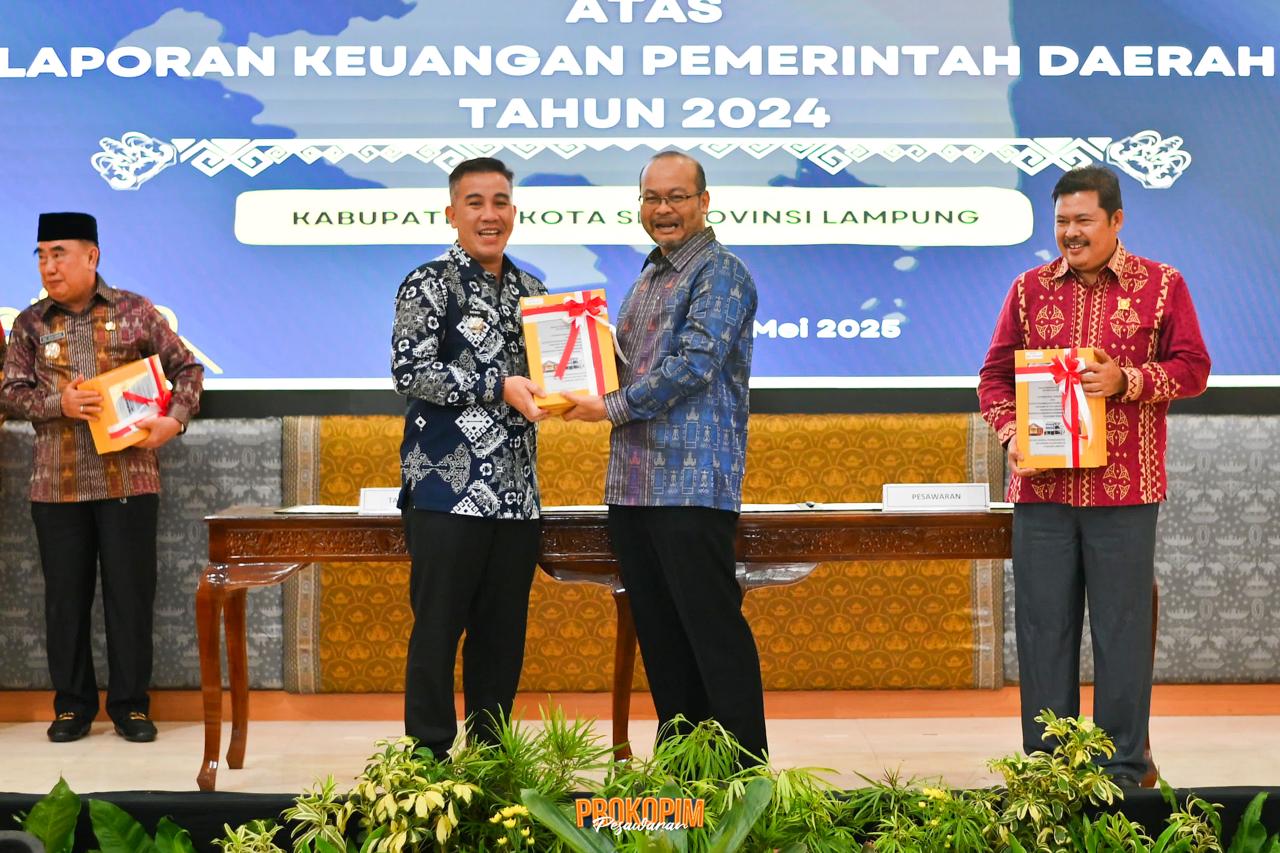 PESAWARAN – Pemerintah Kabupaten (Pemkab) Pesawaran kembali memperoleh opini Wajar Tanpa Pengecualian (WTP) atas Laporan Keuangan Pemerintah Daerah (LKPD) Tahun Anggaran 2024 dari Badan Pemeriksa Keuangan (BPK) RI Perwakilan Provinsi Lampung. Capaian ini menjadi raihan WTP kesembilan secara berturut-turut bagi Pemkab Pesawaran.