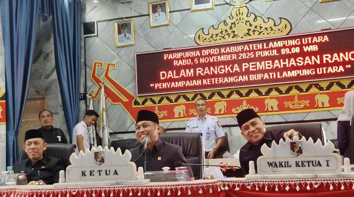 LAMPUNG UTARA – DPRD Kabupaten Lampung Utara menggelar Rapat Paripurna Penyampaian Nota Keuangan dan Raperda APBD Tahun Anggaran 2026 bersama Pemerintah Daerah, Rabu (05/11/2025)