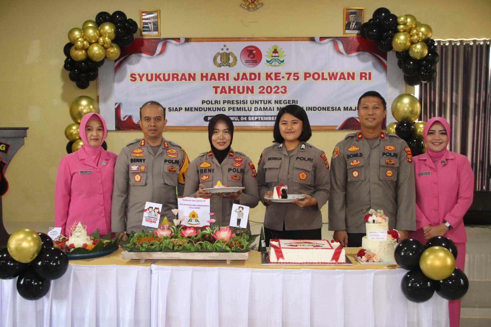Dalam suasana yang penuh kehangatan ini, Kapolres AKBP Benny Prasetya tak lupa untuk mengucapkan selamat ulang tahun yang ke-75 kepada Polwan. Ia juga memimpin pemotongan tumpeng dan kue secara simbolis sebagai tanda perayaan.
