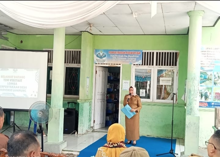 Disampaikan Halimah Zakaria selaku Kadis Perpustakaan dan Kearsipan Kabupaten Pesawaran saat Penilaian Lomba Perpustakaan Desa Tingkat Provinsi Lampung di Desa Purworejo Kecamatan Negeri Katon. Senin (21/07/2025).