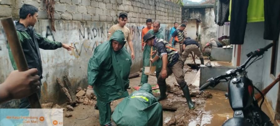 Bersama ratusan stakeholder lainnya, petugas Satpol PP berkolaborasi evakuasi sisa lumpur dan genangan air serta membantu bersih – bersih rumah warga terdampak.(*)