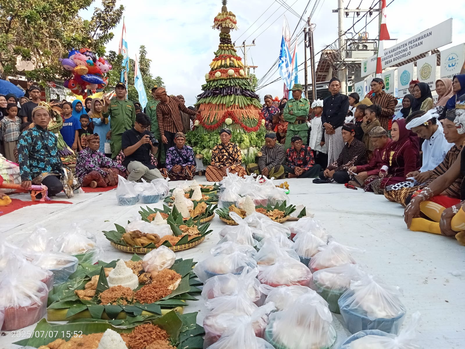 “Warga dari berbagai lapisan masyarakat membawa aneka hasil panen seperti padi, buah-buahan, dan sayuran yang dihias sedemikian rupa, kemudian diarak keliling desa sebagai simbol rasa syukur atas limpahan rezeki dan hasil bumi yang melimpah,” kata Hermansyah, Senin (07/07/2025).