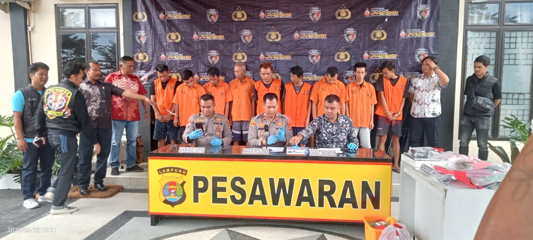 Diungkap saat Kapolres Pesawaran yang diwakili, Wakapolres Kompol Sugandhi Satria Nugraha, didampingi Kabag Ops. Kompol Hendra Gunawan, dan Kasat reskrim, IPTU. Pande Putu Yoga, saat menggelar konferensi pers di halaman Mapolres setempat, Jum’at, (22/08/2025).