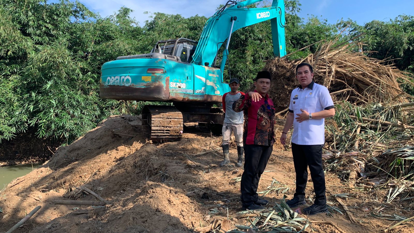 PESAWARAN — Bupati Pesawaran meninjau secara langsung pengerjaan normalisasi sungai di Desa Bagelen Kecamatan Gedong Tataan.