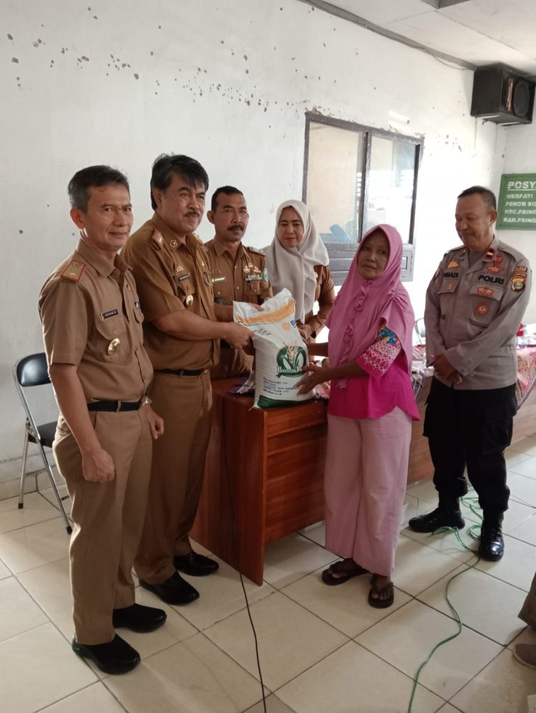 Secara simbolis Sekda Pringsewu Heri Iswahyudi didampingi Kadis Ketahanan Pangan,Camat Pringsewu kepala Pekon Sidoharjo Supratikno bersama PSM, Babinkamtibmas serta perangkat Pekon Memberikan bantuan beras kepada Keluarga Penerima Manfaat KPM masing-masing 1 karung beras berat 10 kg untuk tahap ke V
