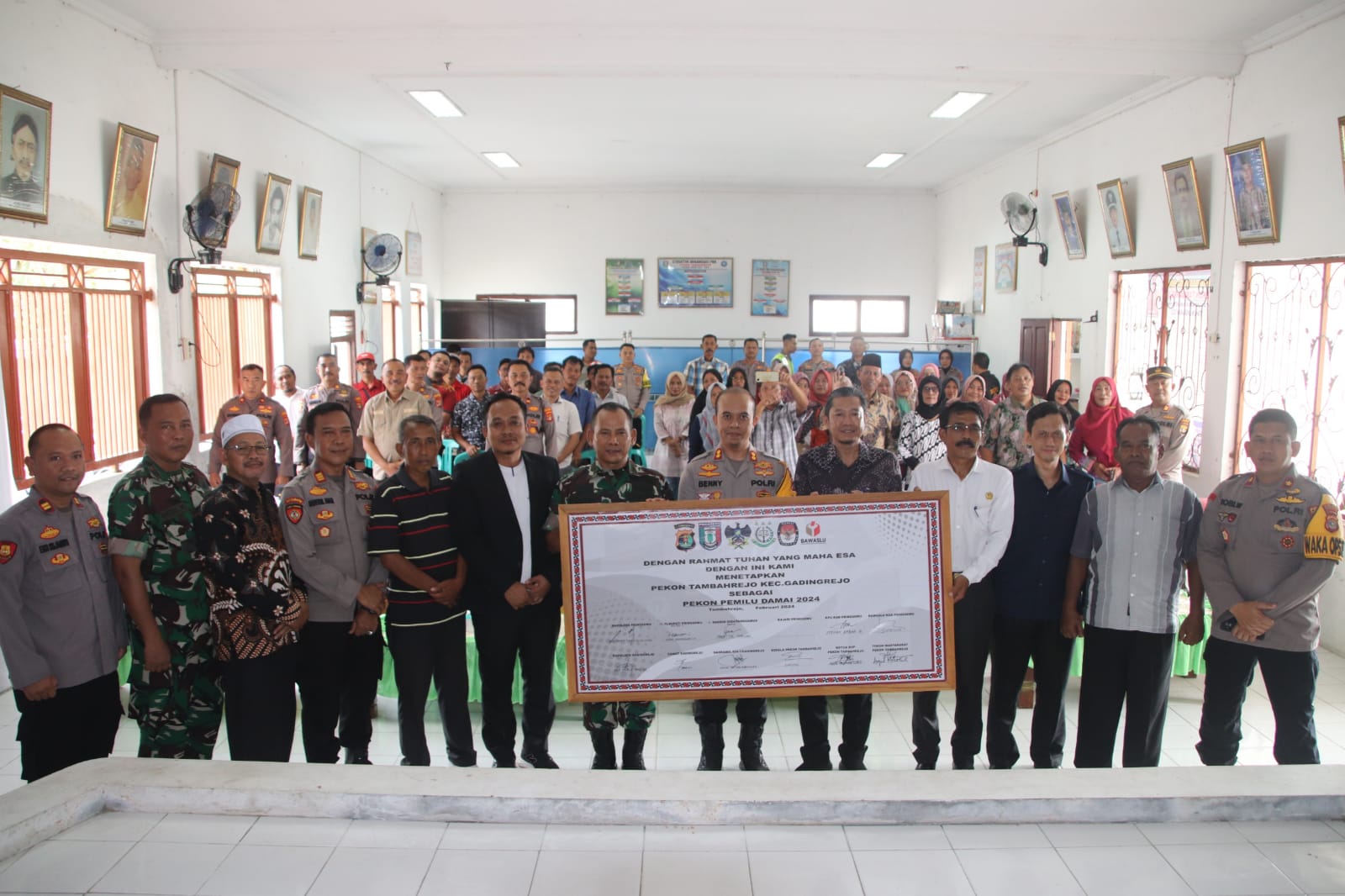 PRINGSEWU – Polres Pringsewu dan Forkopimda Kabupaten Pringsewu melaunching Pekon (Desa) Tambahrejo, Gadingrejo, Pringsewu sebagai Pekon Pemilu Damai Kabupaten Pringsewu.
