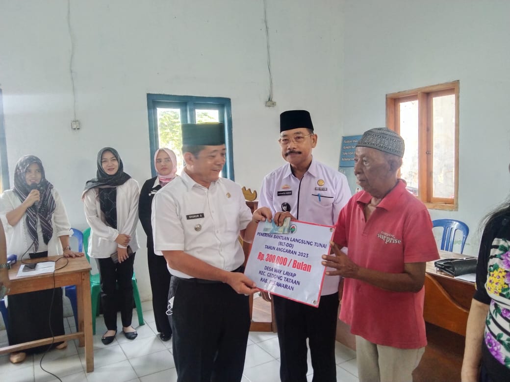 SIRLAMPUNG, PESAWARAN – Pemdes Waylayap bagikan Bantuan Langsung Tunai Dana Desa (BLT-DD) Tahap l Tahun 2023, Kepada 41 KPM (Keluarga Penerima Manfaat).