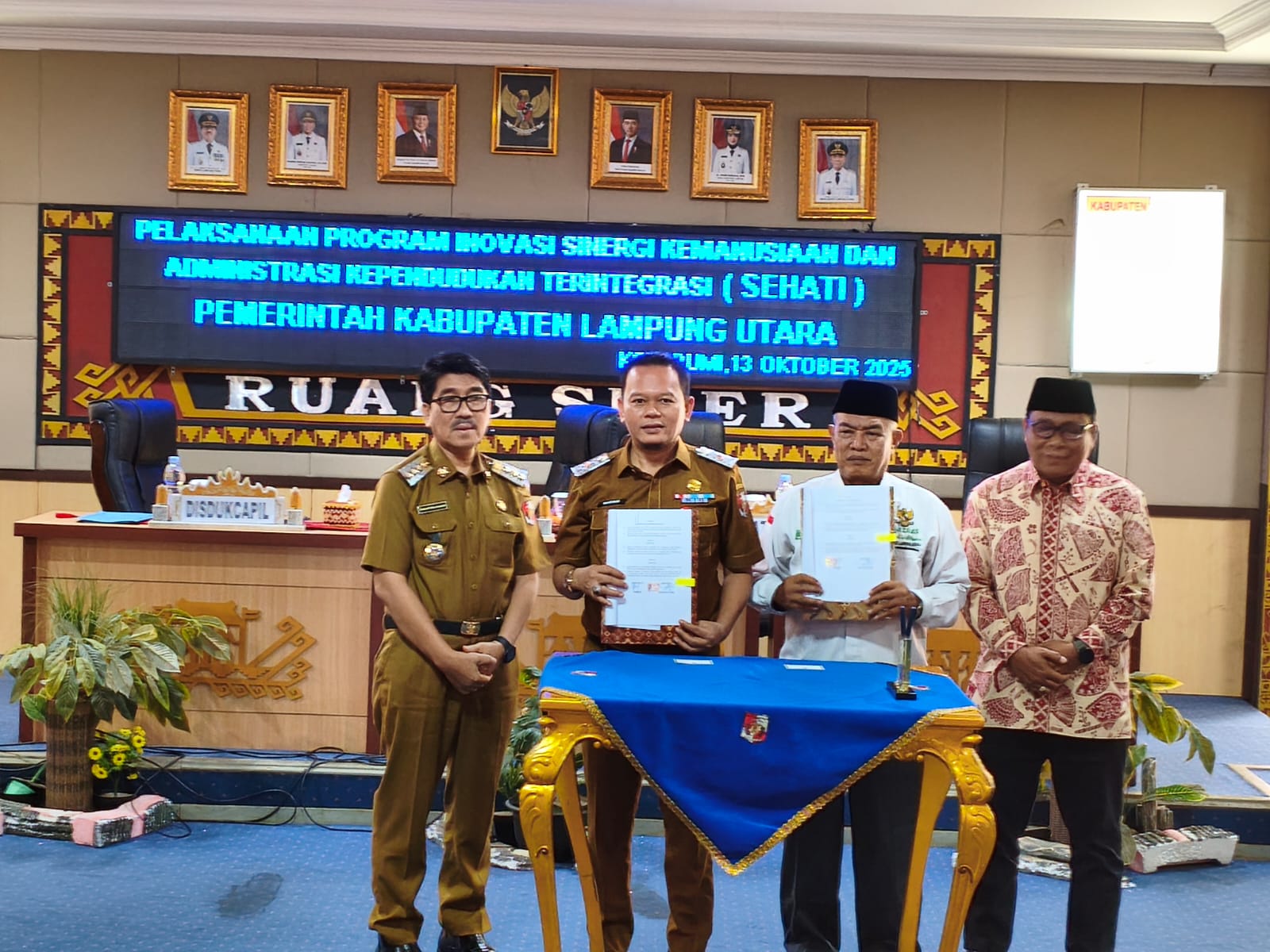 Dorongan ini disampaikan dalam acara penandatanganan kerja sama program inovasi, sinergi kemanusiaan, dan administrasi kependudukan terintegrasi (Sehati) bersama Badan Amil Zakat Nasional (BAZNAS), yang digelar di Ruang Siger Setdakab setempat, Senin (13/10/2025).