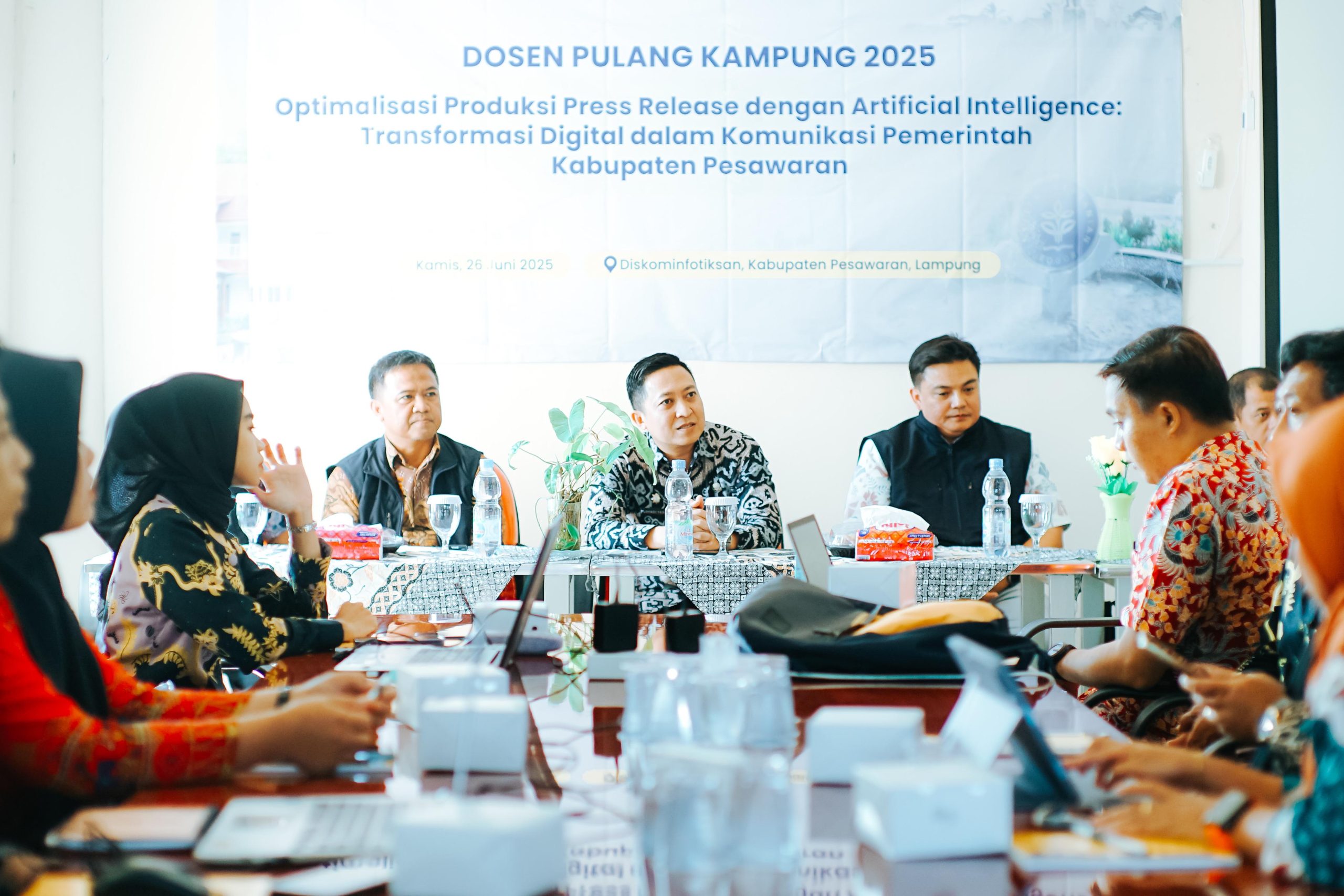 PESAWARAN – Pemerintah Kabupaten Pesawaran bekerja sama dengan Insitut Pertanian Bogor (IPB) University berkolaborasi dalam peningkatkan kualitas layanan informasi publik dengan menyelenggarakan pelatihan bertajuk “Optimalisasi Produksi Press Release dengan Artificial Intelligence: Transformasi Digital dalam Komunikasi Pemerintah Kabupaten Pesawaran”. Kegiatan ini digelar pada Kamis, (26/06/2025) di Aula Lantai 3 Dinas Perpustakaan dan Kearsipan Kabupaten Pesawaran.