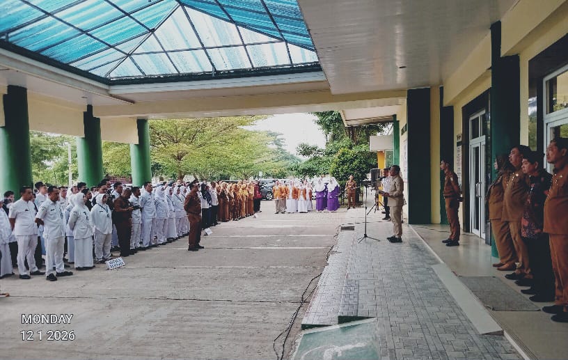 PRINGSEWU, Sir Lampung News – Bupati Pringsewu Riyanto Pamungkas memimpin Apel Pagi jajaran Rumah Sakit Umum Daerah (RSUD) Kabupaten Pringsewu di halaman RSUD Kabupaten Pringsewu, Jalan Lintas Barat Sumatera, Pagargunung, Fajaragung Barat, Kabupaten Pringsewu, pada Senin (12/01/2026).