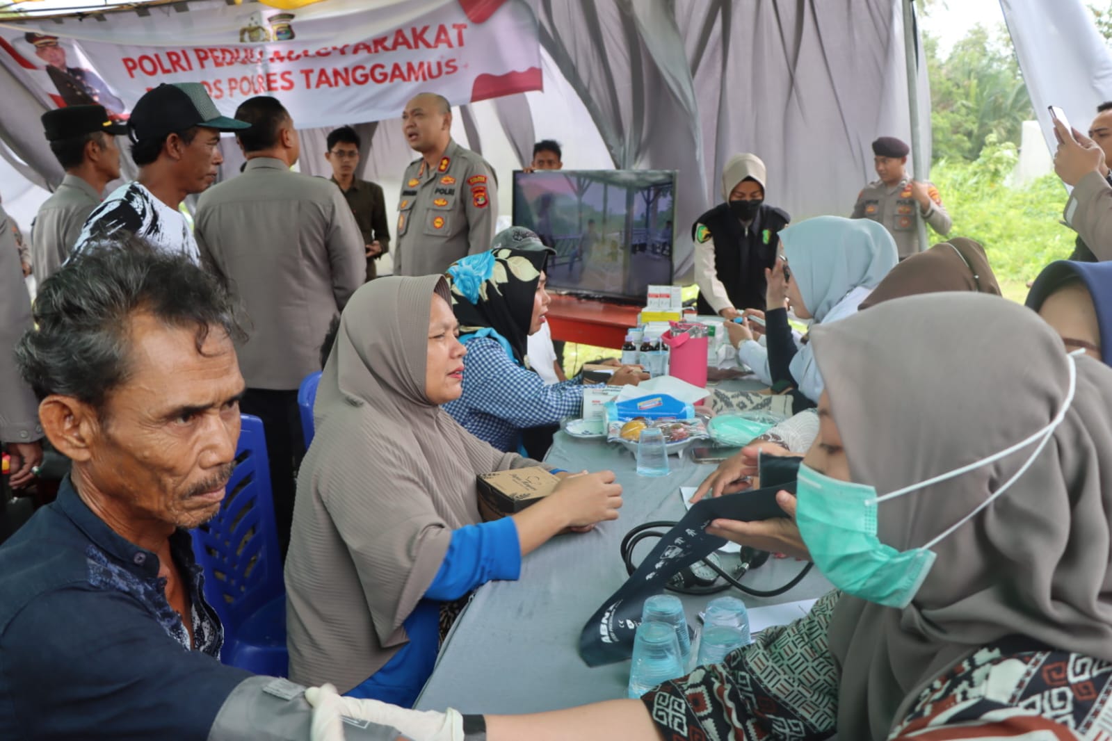 Selain pembagian bantuan sosial, tim dokter dari Urkes Polres Tanggamus turut memberikan layanan pemeriksaan kesehatan gratis bagi masyarakat dan 72 warga memanfaatkan kesempatan ini untuk memeriksakan kondisi kesehatan mereka.