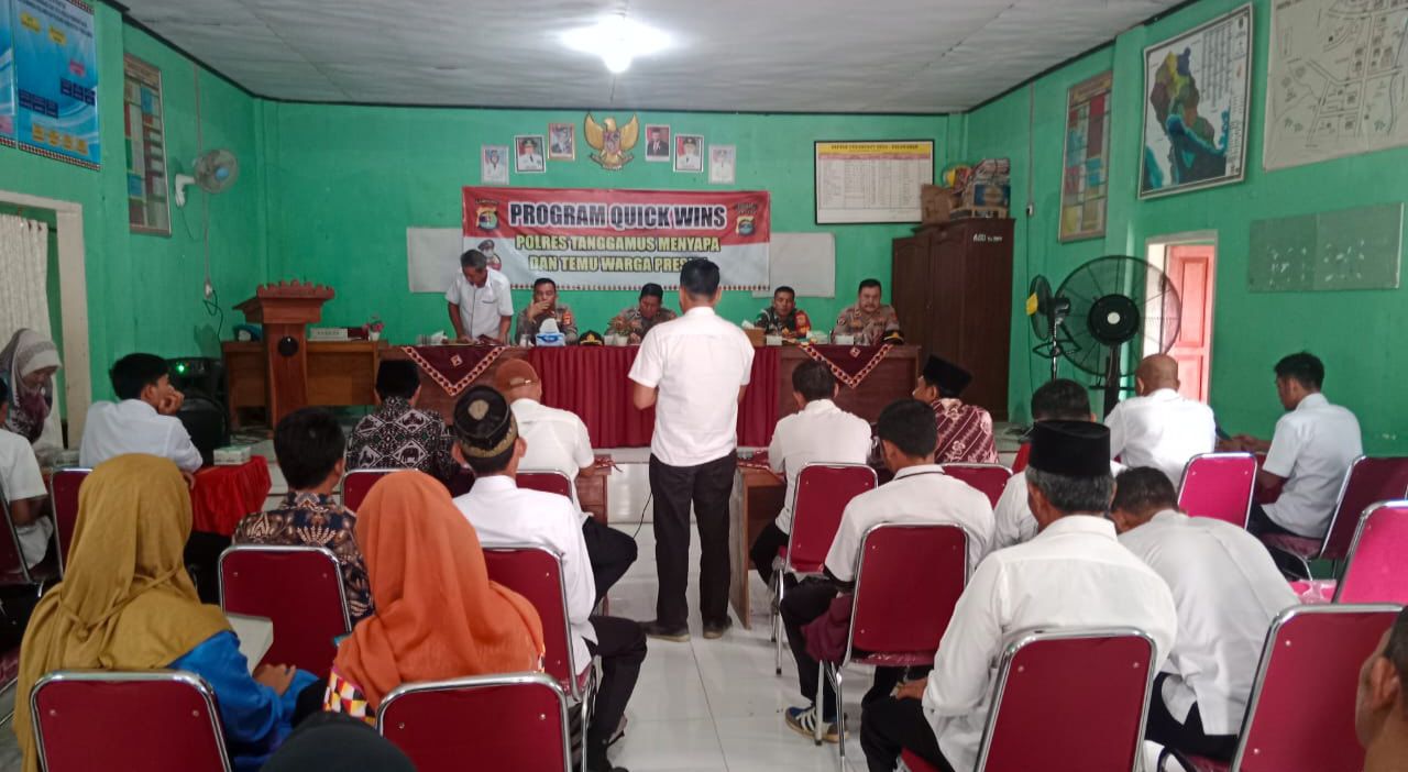 SIRLAMPUNG, TANGGAMUS –  Jabarkan Program Quick Wins Presisi Polri, Polres Tanggamus menggelar temu warga dalam kegiatan “Polres Tanggamus Menyapa” di dua tempat berbeda, Rabu 23 November 2022.