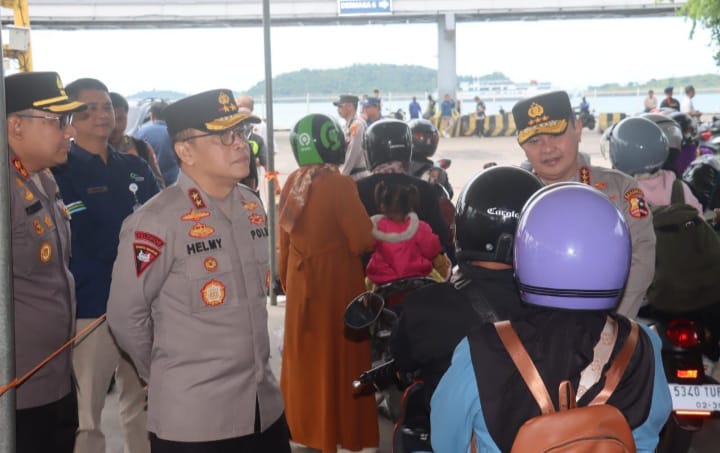 LAMPUNG SELATAN -Kabaharkam Polri Komjen Pol Mohammad Fadil Imran meminta Polda Lampung serta Pihak Pelabuhan Penyebrangan Khususnya PT ASDP Pelabuhan Bakauheni untuk memberikan atensi khusus terhadap kelancaran arus lalu lintas pemudik yang masuk menuju Pelabuhan Bakauheni, Lampung Selatan.
