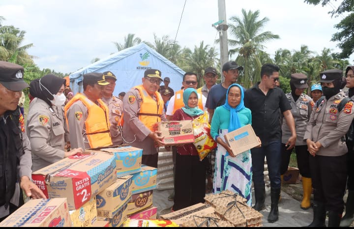 LAMPUNG SELATAN– Banjir akibat naiknya air Sungai Kuala Sekampung melanda Kecamatan Sragi, Kabupaten Lampung Selatan, menyebabkan ratusan warga terdampak dan harus mengungsi. Sebagai bentuk kepedulian, Polres Lampung Selatan menyalurkan bantuan sosial berupa tali asih sembako kepada para korban pada Selasa, 28 Januari 2025.