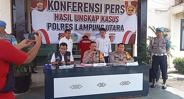 Kapolres Lampung Utara AKBP Deddy Kurniawan di dampingi Waka Polres Kompol. Yohanis dan Kasat Reskrim AKP. Apfryyadi mengatakan jajarannya berhasil mengamankan satu dan dua pelaku pungli terhadap supir angkutan batu bara saat melintas di Jalinsum tepatnya di Desa Cahaya Negeri.