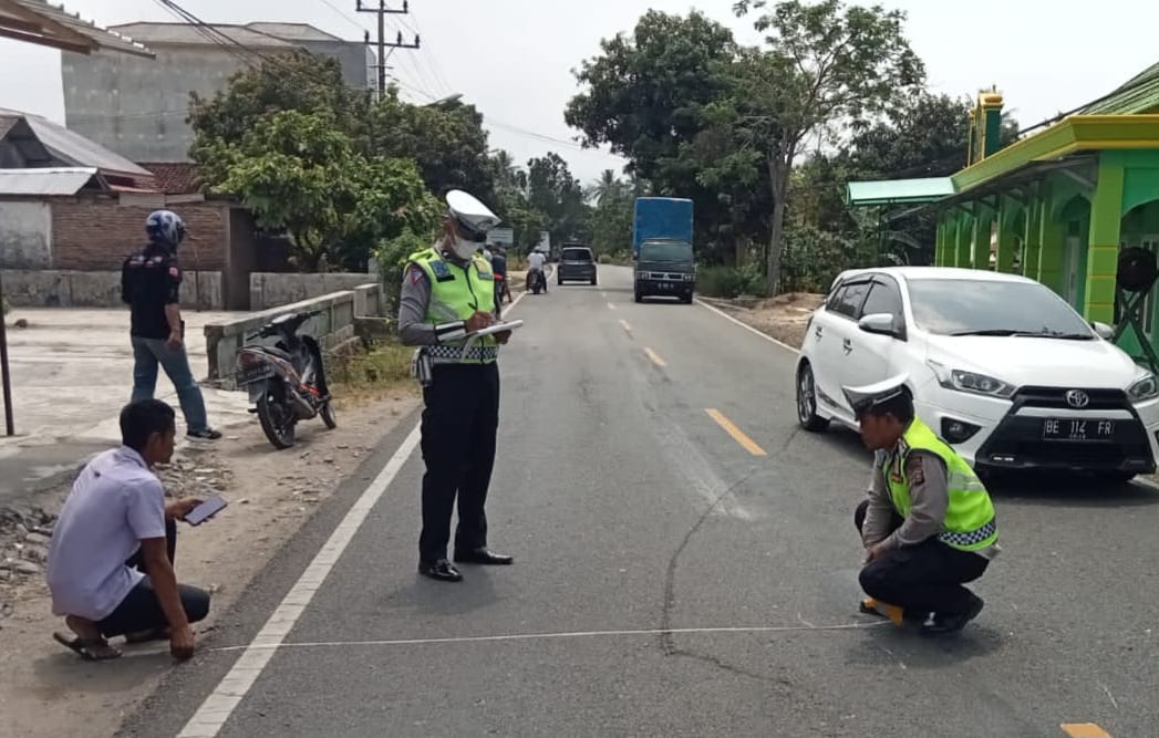 Namun, dari arah berlawanan, ada mobil minibus yang identitas pengendaraannya tidak diketahui, sehingga diduga terjadi serempetan antara sepeda motor Yamaha Vega-R Nopol BE 3588 UB dengan mobil tersebut.