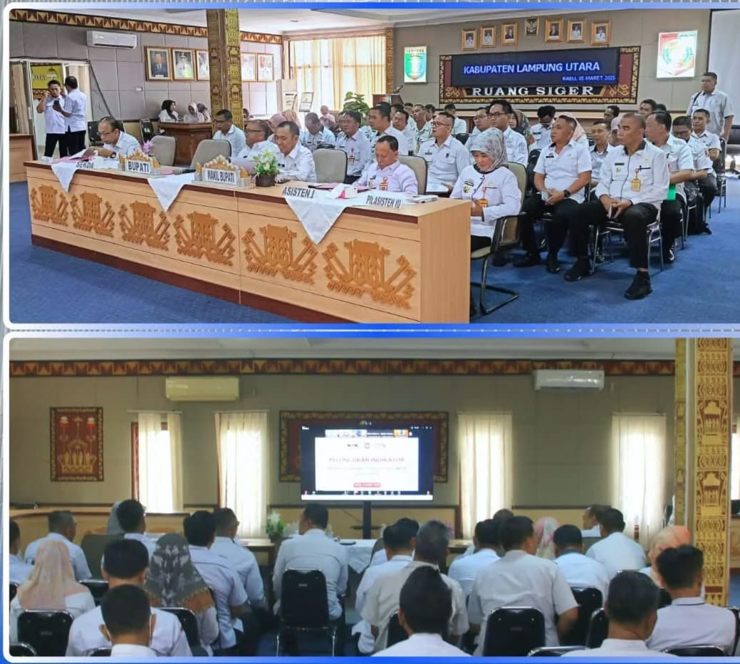 LAMPUNG UTARA – Bupati Lampung Utara, Dr. Ir. H. Hamartoni Ahadis, M.Si., yang diwakili oleh Wakil Bupati Lampung Utara, Romli, S.Kom., S.H., M.H., menghadiri Peluncuran Indikator Indeks Pencegahan Korupsi Daerah (IPKD) MCP Tahun 2025, yang diselenggarakan secara virtual di Aula Siger Sekretariat Daerah Kabupaten Lampung Utara, Rabu (05/03/25).