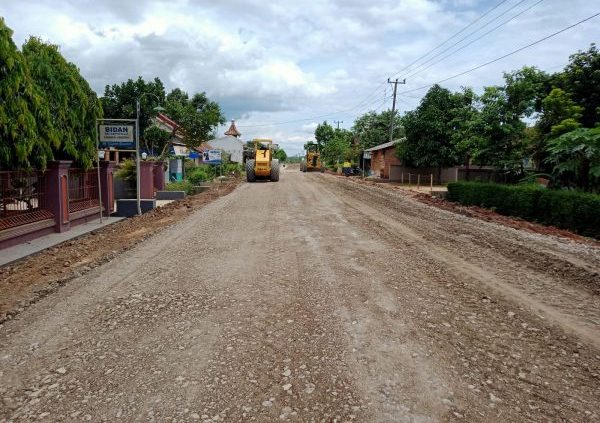 Walaupun belum selesai nampak jelas badan jalan kelihatan lebih lebar dari sebelumnya, para pekerja dengan semangat bekerja , supaya lebih cepat selesai dan bisa cepat dipakai warga.